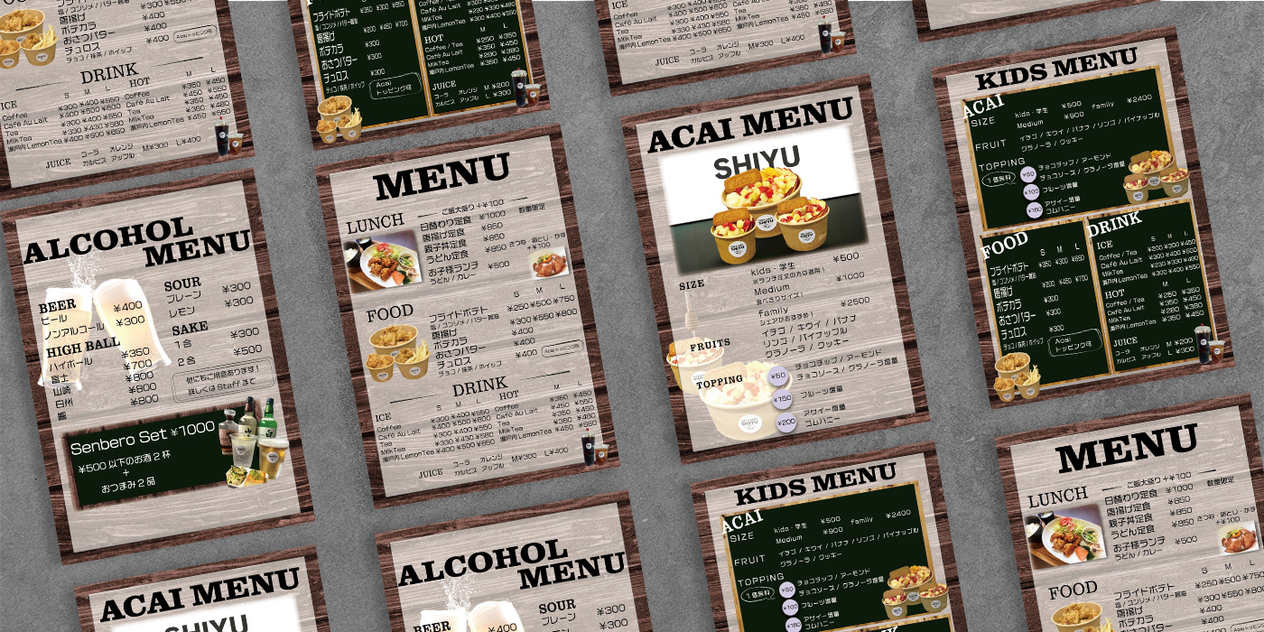 メニュー表デザイン(素材提供有)